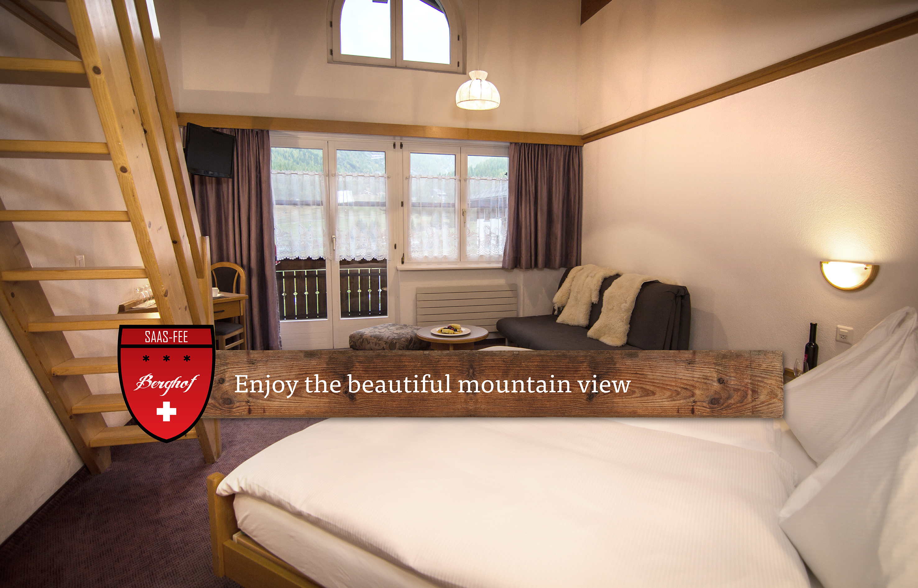 In idyllischer und direkter Lage direkt im Geschehen von Saas-Fee liegt das Garni Hotel Berghof, Ihre Ferienunterkunft in Saas-Fee mit Wohlfühlfaktor.