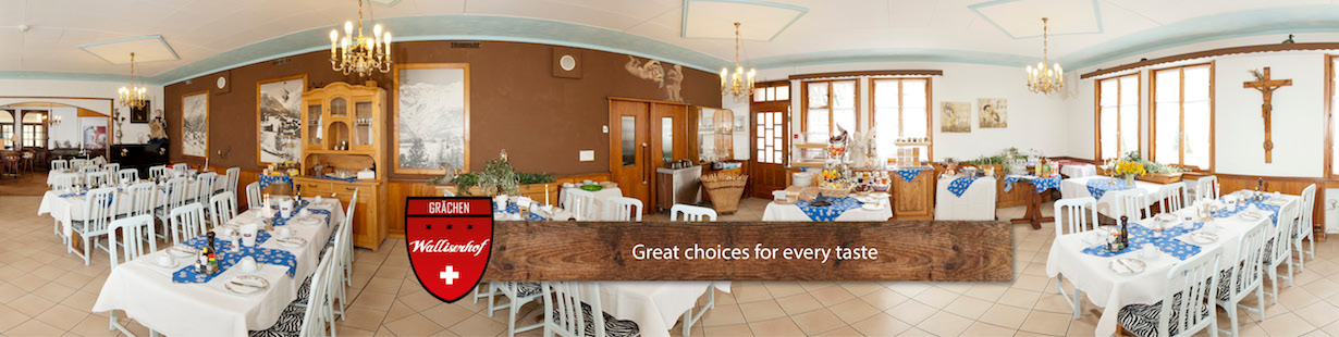 À l’hôtel Walliserhof, la journée commence avec un petit-déjeuner équilibré composé de produits locaux. Le menu du soir est marqué par la cuisine authentiquement suisse et valaisanne comme la «Grächner Heuhaxe» avec ses rösti, la fondue et la raclette et bien d’autres délices culinaires.